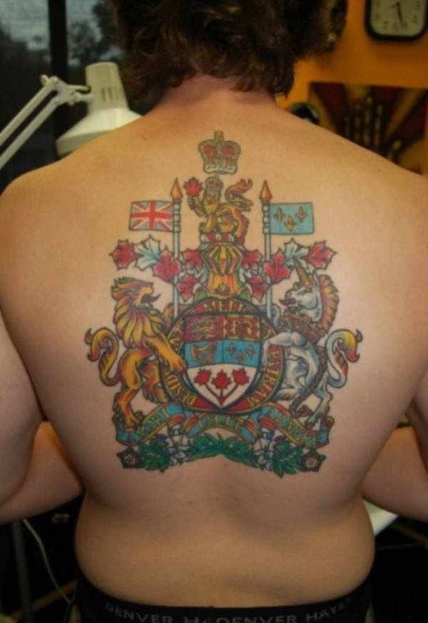 健壮男子左手大臂膀上超酷的盾形纹章纹身