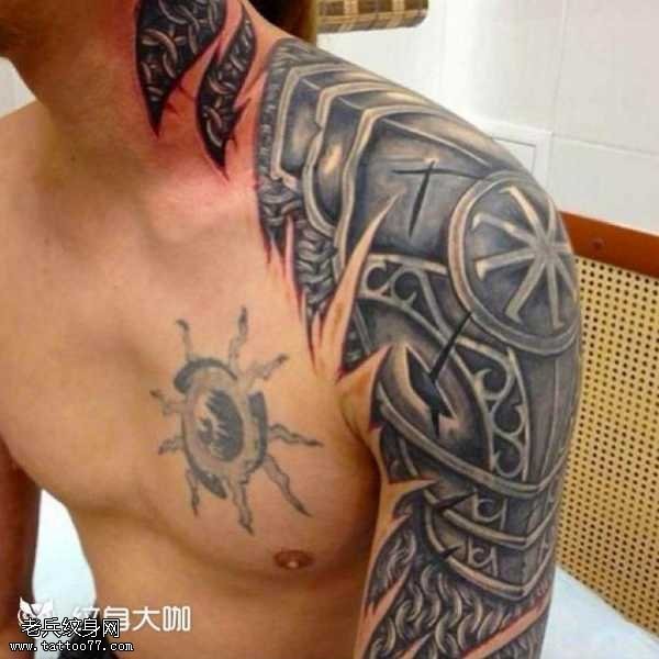 女生肩花纹身_15张女性双肩对称的肩花纹身图案作品图片