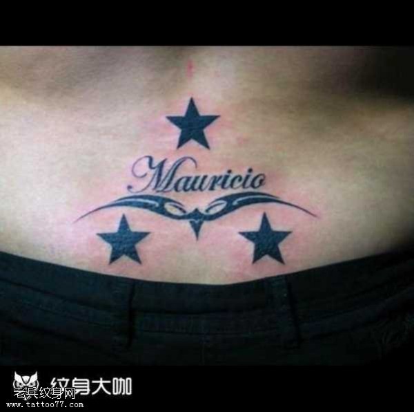 女生后腰纹身黑白灰风格抽象线条纹身图案