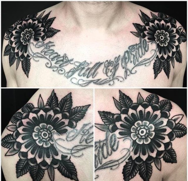 MAMA美丽和经典的心纹身着剑和花朵纹身图案
