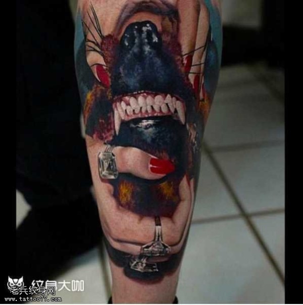 花腿纹身--一组大黑腿纹身图案作品欣赏