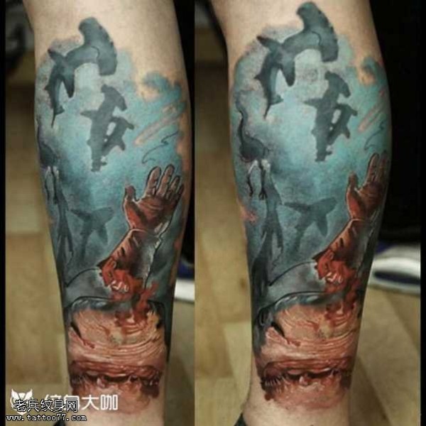 腿部鳌鱼纹身图案_腿部纹身图案大全_纹身图吧