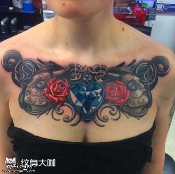 女性大花胸纹身_43张霸气漂亮的女性大花胸纹身图案作品
