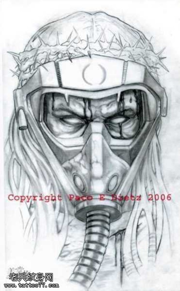 手稿生化面具纹身图案