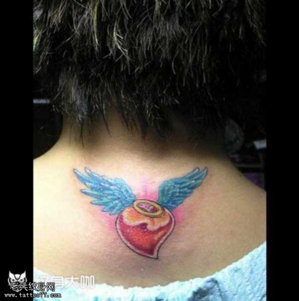 背部心形翅膀纹身图案