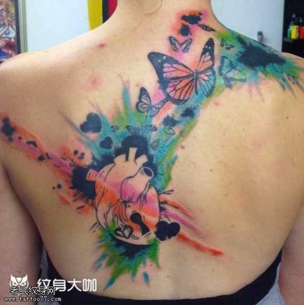 背部心脏蝴蝶纹身图案