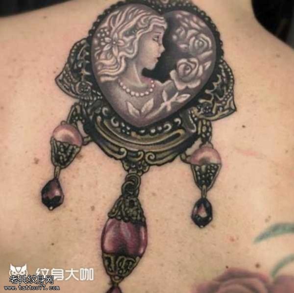 背部心形人物纹身图案