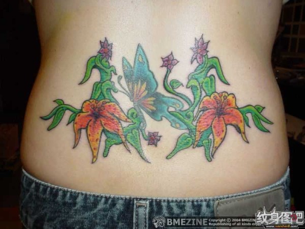 分享一款腰部时尚性感的蝶恋花纹身图案_腰部纹身图案大全_纹身图吧
