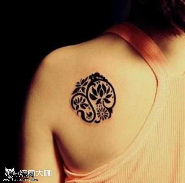 女生肩花纹身_15张女性双肩对称的肩花纹身图案作品图片
