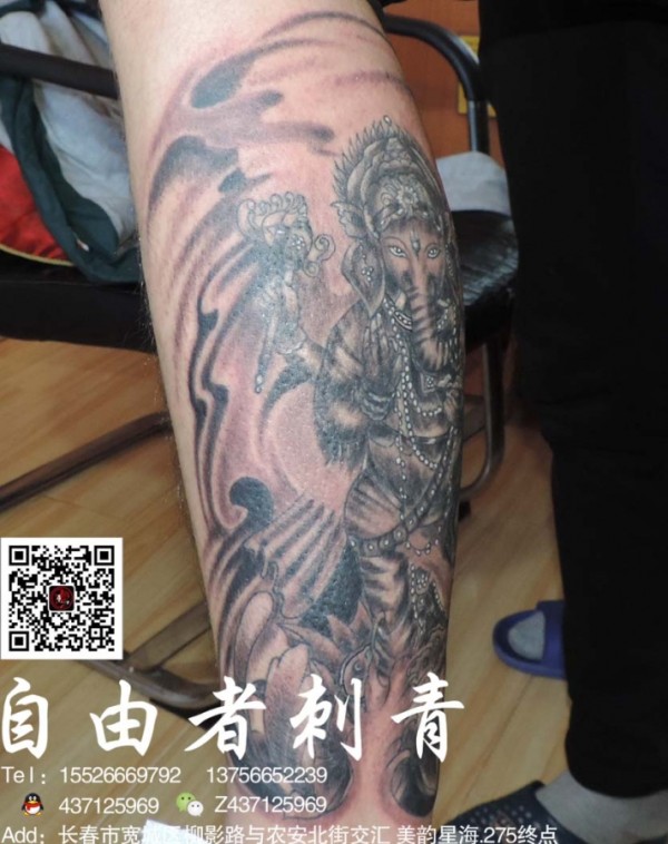 手臂黑灰象神_一组12张手臂上的黑灰象神纹身图案作品欣赏