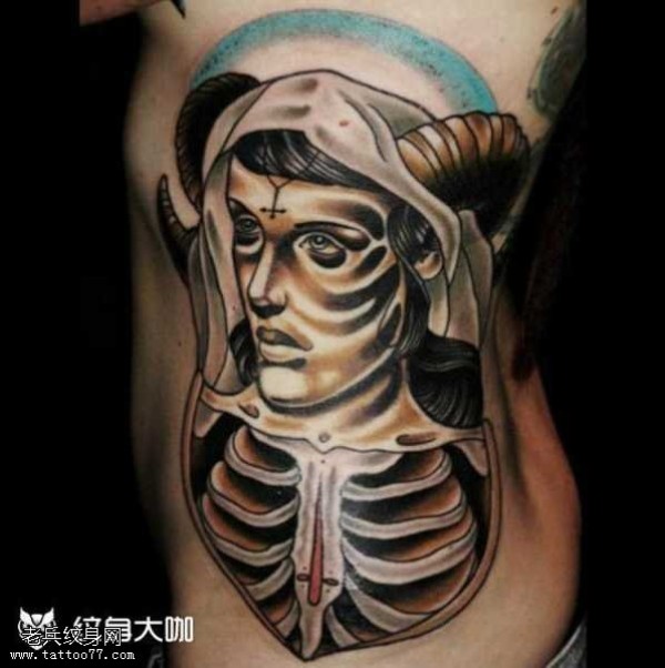腰部骨羊人纹身图案