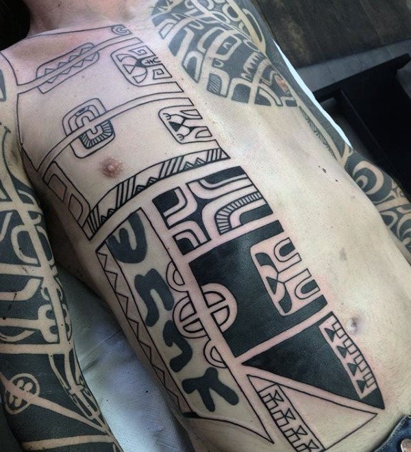 男性背部帅气的部落图腾纹身图案
