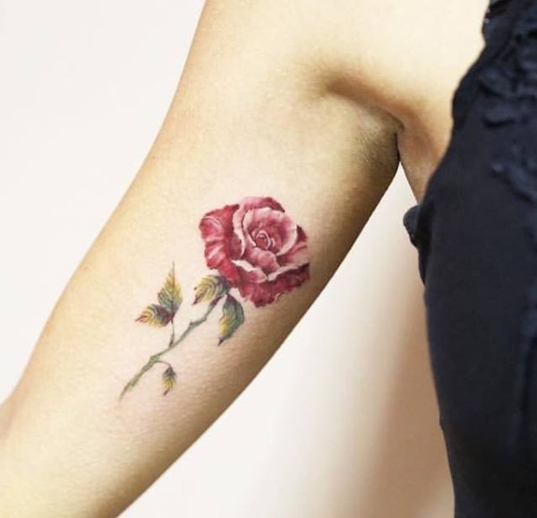 女生手臂上的小清新花朵纹身图案