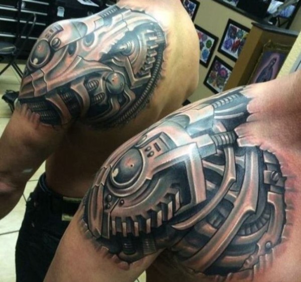 男士很酷帅的机械臂纹身图案