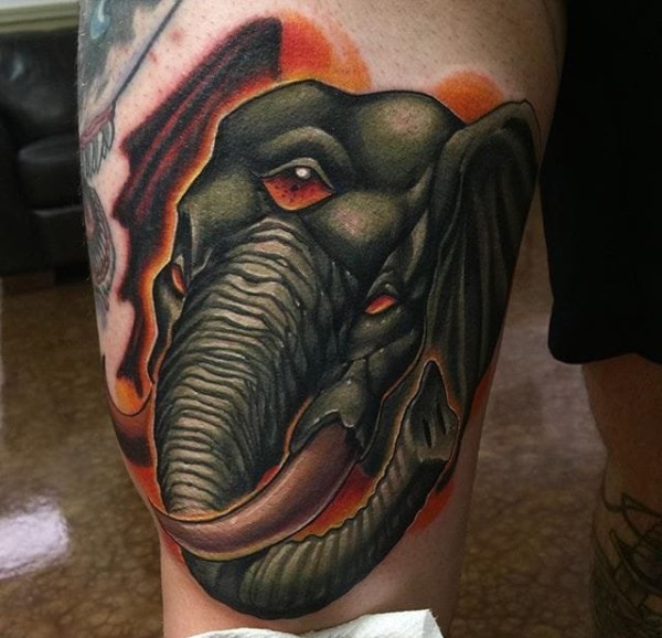 New School风格大腿三眼象纹身图案