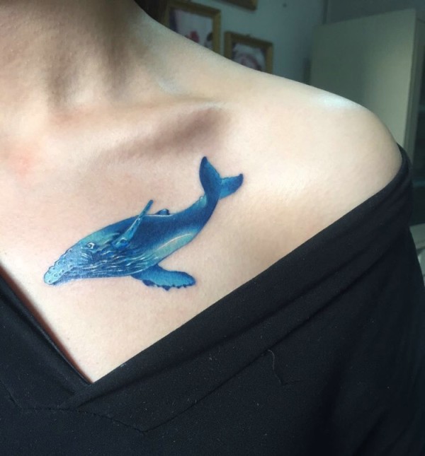 男人脖子彩色燕子刺青图案图片_脖子纹身图案大全_纹身图吧