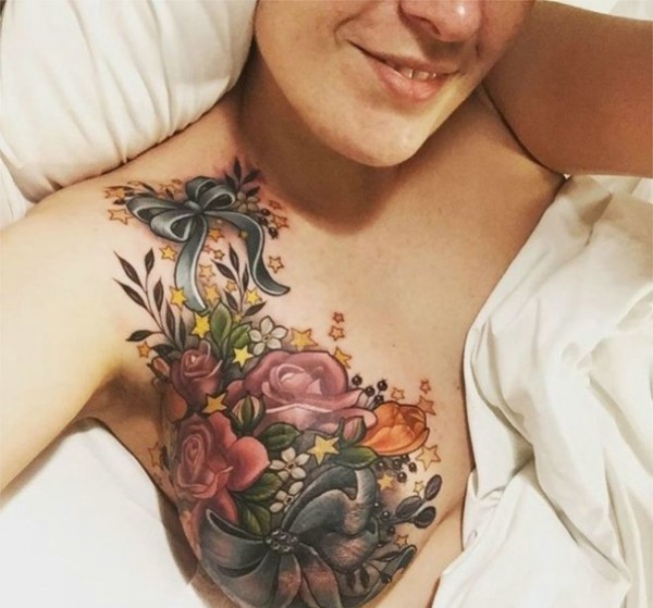 女性大花胸纹身_43张霸气漂亮的女性大花胸纹身图案作品
