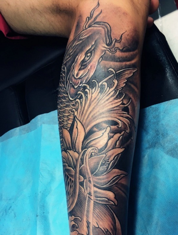 传统鲤鱼花小腿纹身_腿部纹身图案大全_纹身图吧