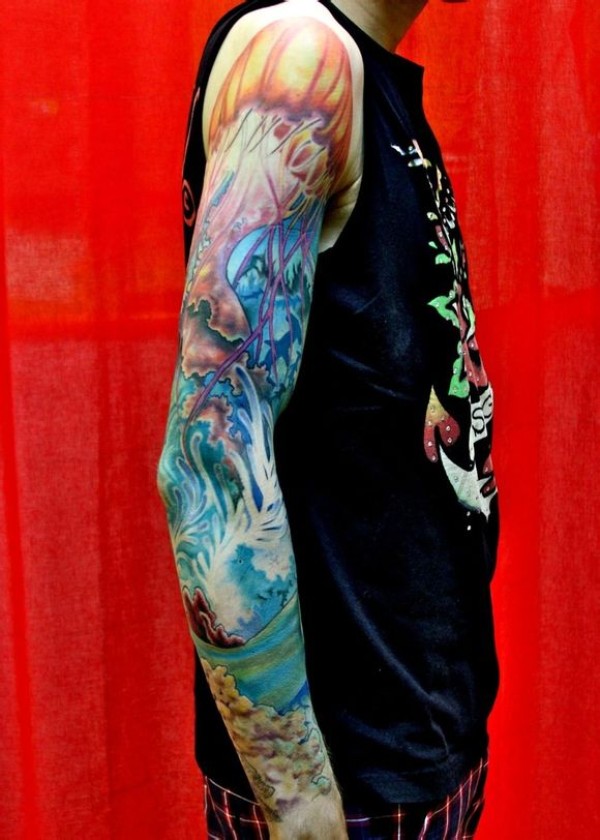 手臂一款彩色蘑菇纹身图案_臂部纹身图案大全_纹身图吧