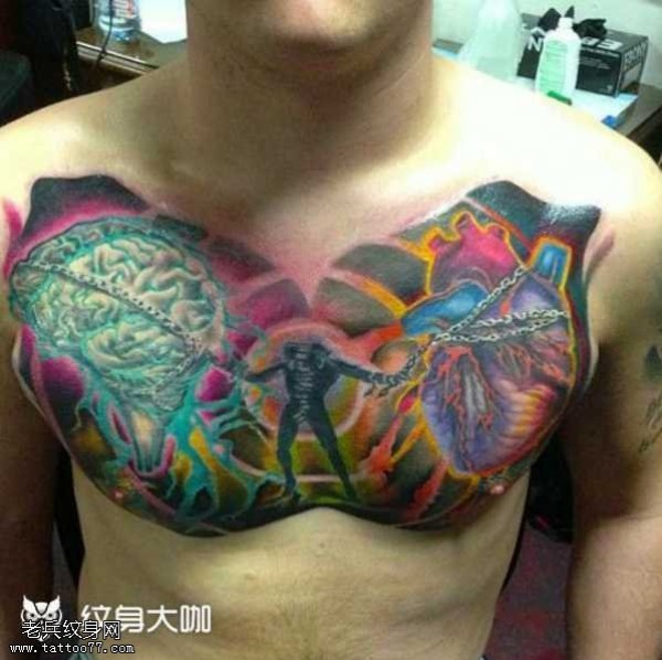 胸部心脑纹身图案
