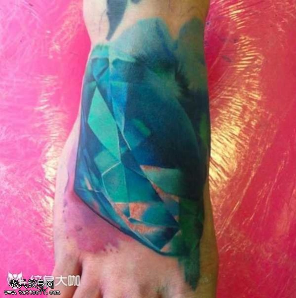 脚部逼真蓝钻石纹身图案