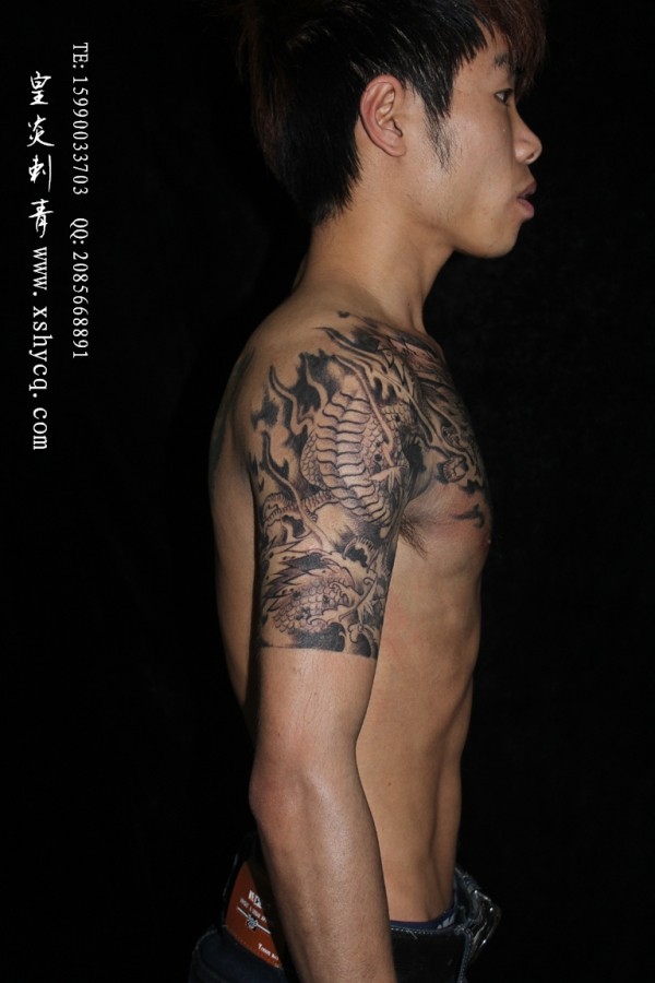 日式手彫刺青作品—半甲龙很感谢客户认可手彫刺青,手彫是日本纹身的手工雕刻技术,时间可以追溯到日本17世纪的江户时代。19世纪,手彫技术被日本黑帮挪用,被用作入会仪式,象征着从此就是江湖中人。在日式传统