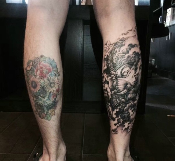 小腿上一款大象纹身图案_腿部纹身图案大全_纹身图吧
