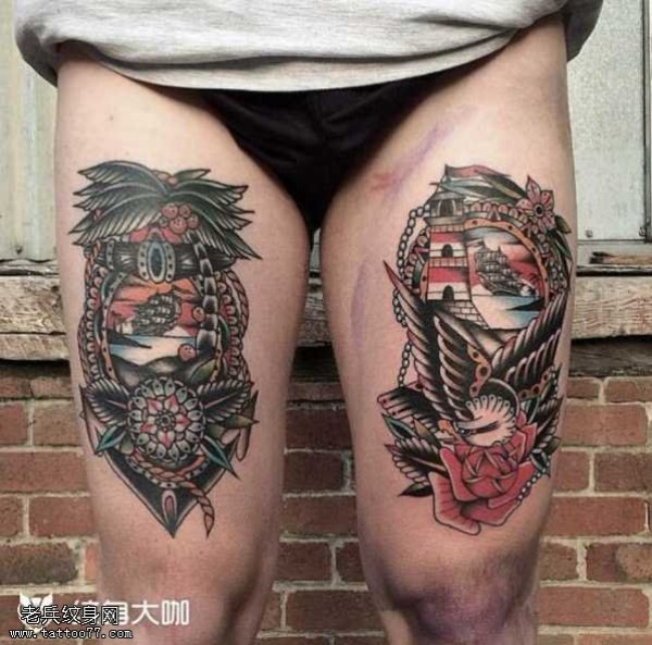 传统花腿纹身--18张传统风格的大花腿纹身图案作品
