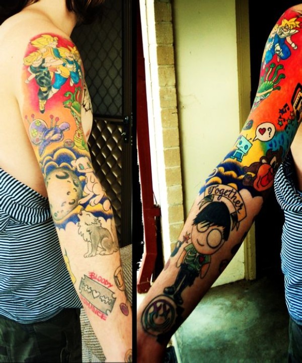 搞笑卡通纹身彩色线条鬼精灵电影里的纹身图案