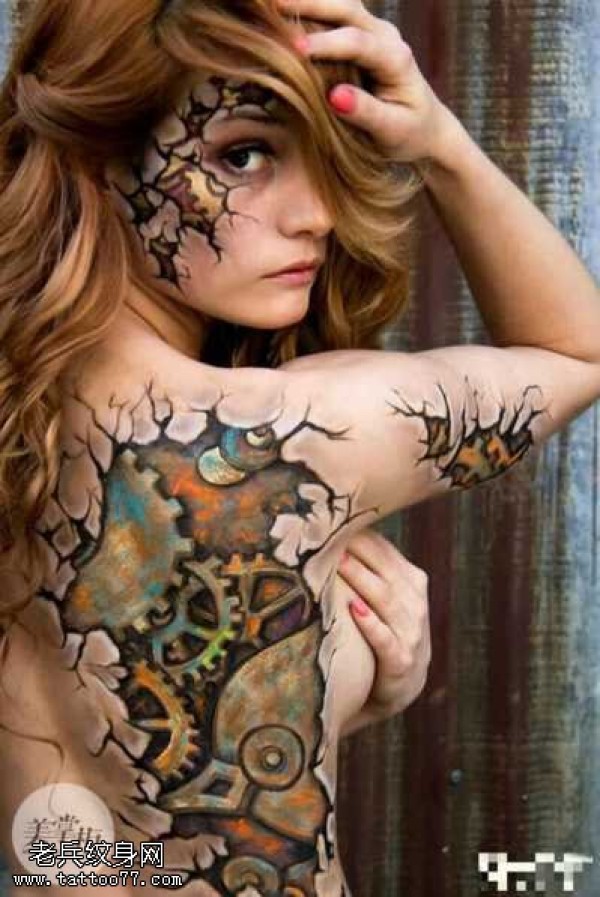 性感女生满背创意文身作品