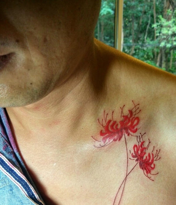 锁骨处美丽而骄傲的彼岸花纹身图案