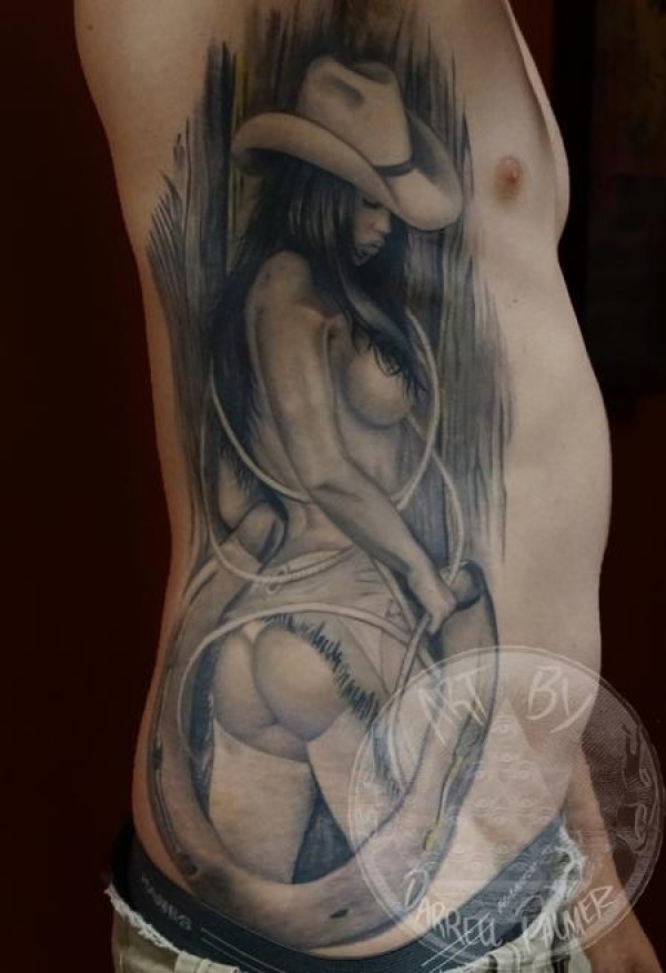 女生后腰纹身黑白灰风格抽象线条纹身图案