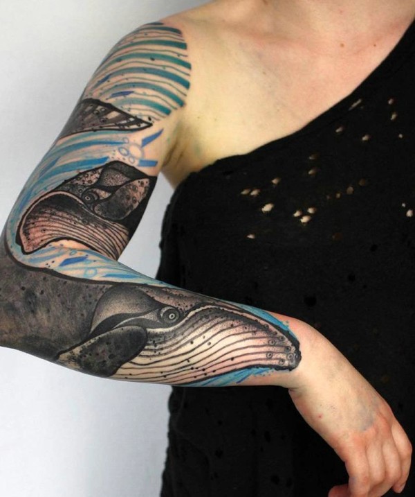 花臂海豚纹身刺青活泼有个性