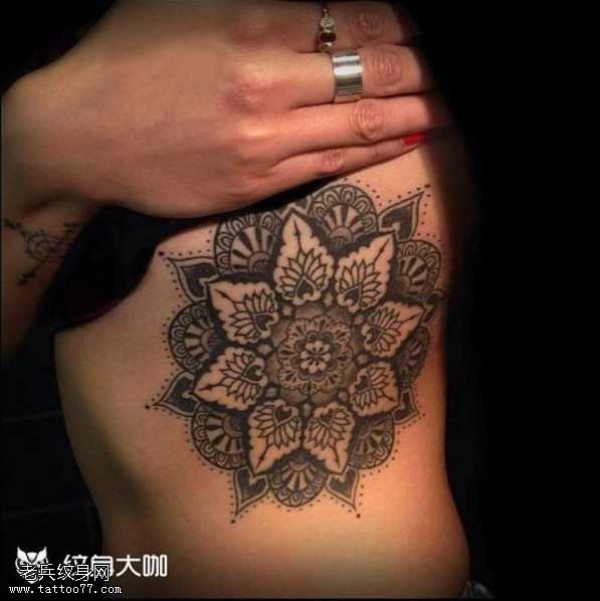 女性腰部莲花花纹刺青_腰部纹身图案大全_纹身图吧