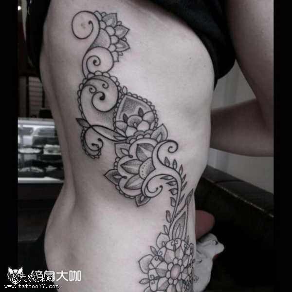 腰部花藤纹身图案