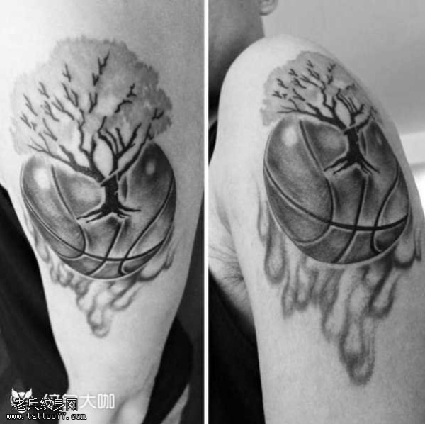 胳膊篮球树纹身图案