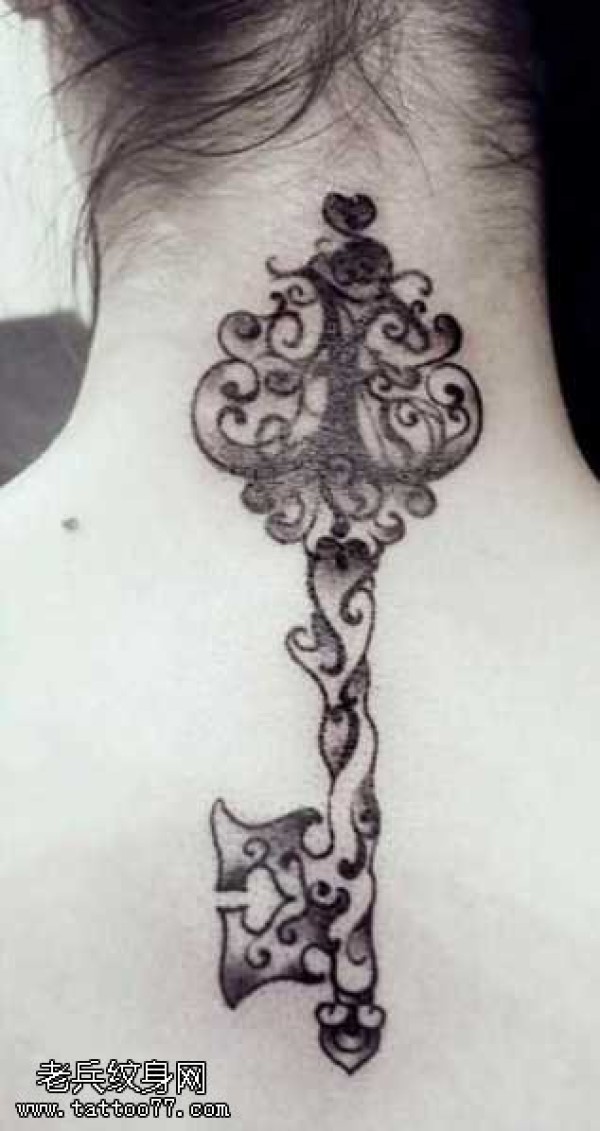 后颈部纹身小图--9张女生脖子后颈处的简约纹身图案