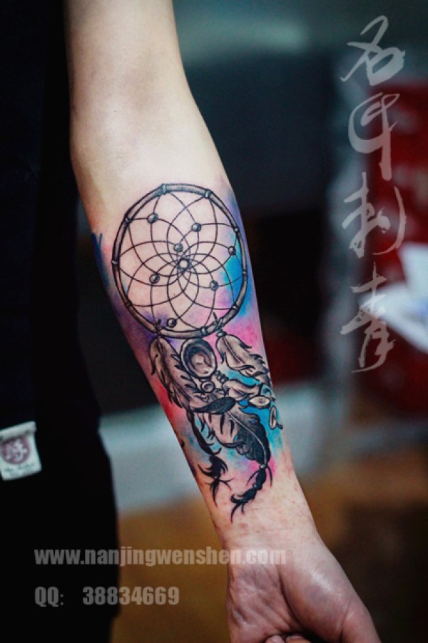 小臂捕梦网纹身