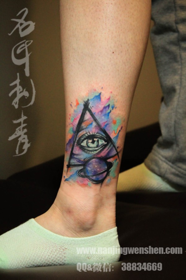 MM脚踝全视之眼纹身 彩色纹身