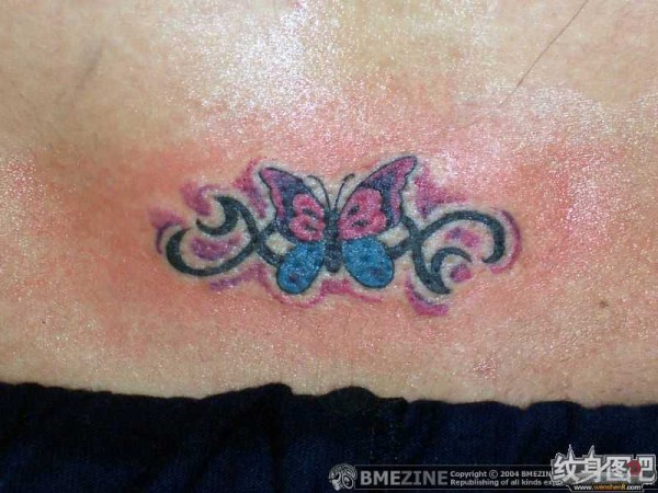 分享一款腰部时尚性感的蝶恋花纹身图案_腰部纹身图案大全_纹身图吧