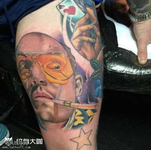 腿部老头纹身图案
