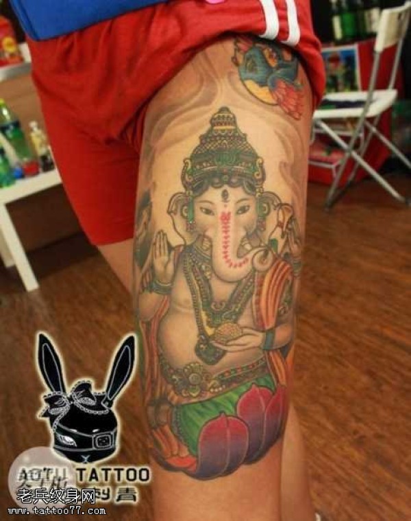 小腿上一款大象纹身图案_腿部纹身图案大全_纹身图吧