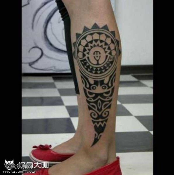 腿部大气图腾纹身图案