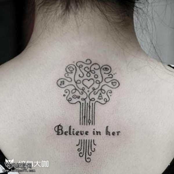 背部树图腾纹身图案