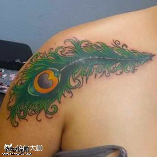 肩部孔雀羽毛纹身图案