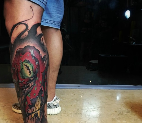 花腿纹身--一组大黑腿纹身图案作品欣赏