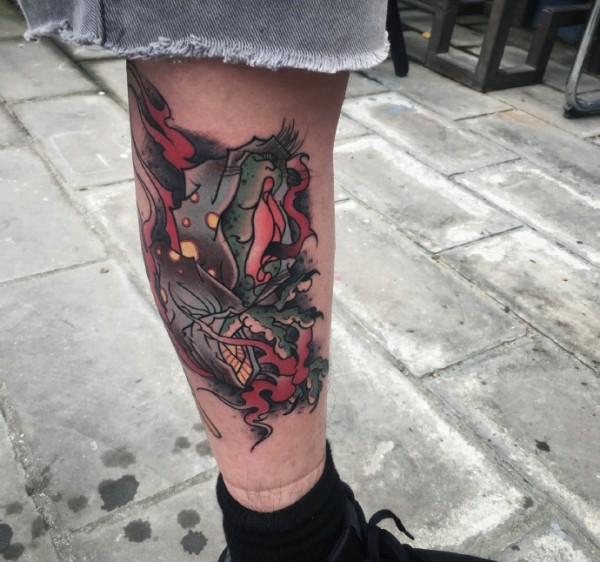 花腿纹身--一组大黑腿纹身图案作品欣赏