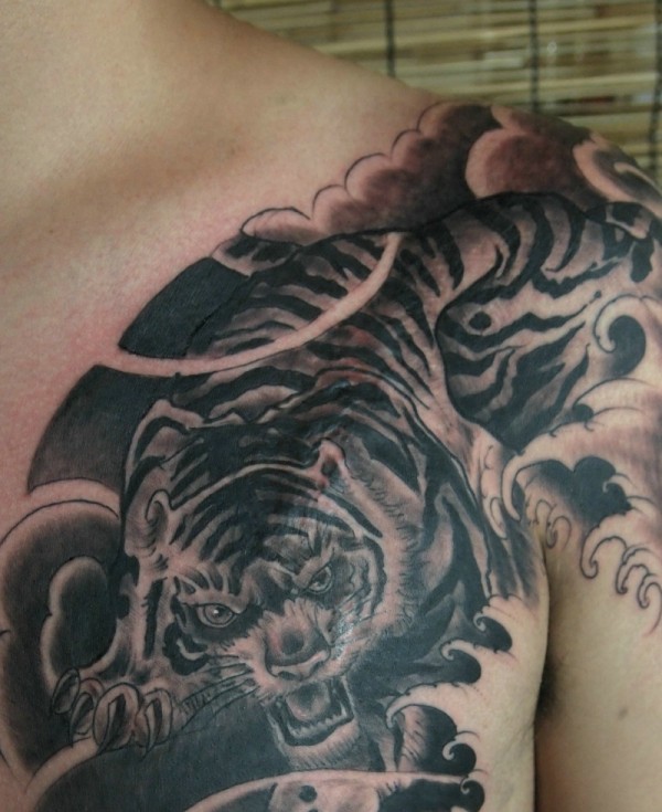 霸气半胛老虎纹身_动物纹身图案大全_纹身图吧