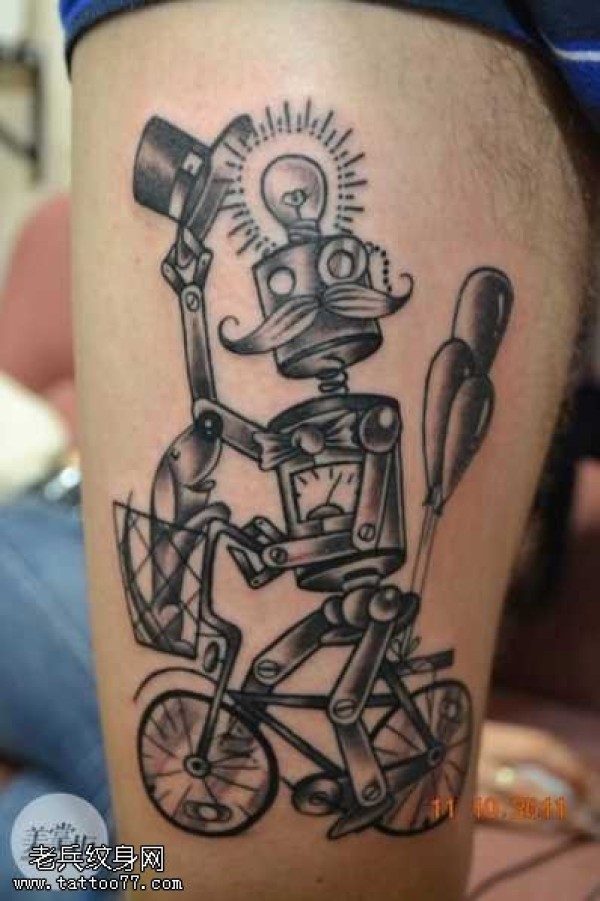腿部热气车人纹身图案