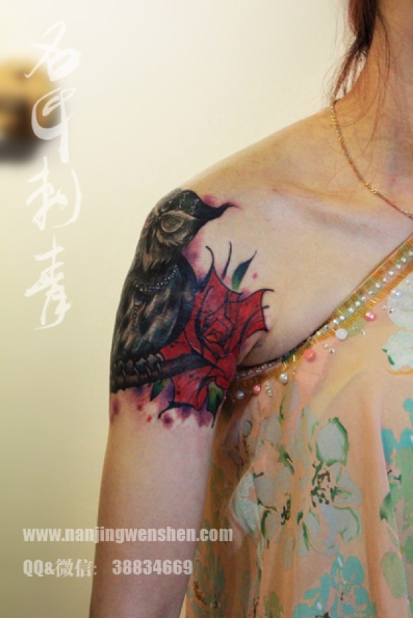 猫头鹰纹身 遮盖纹身 大臂纹身